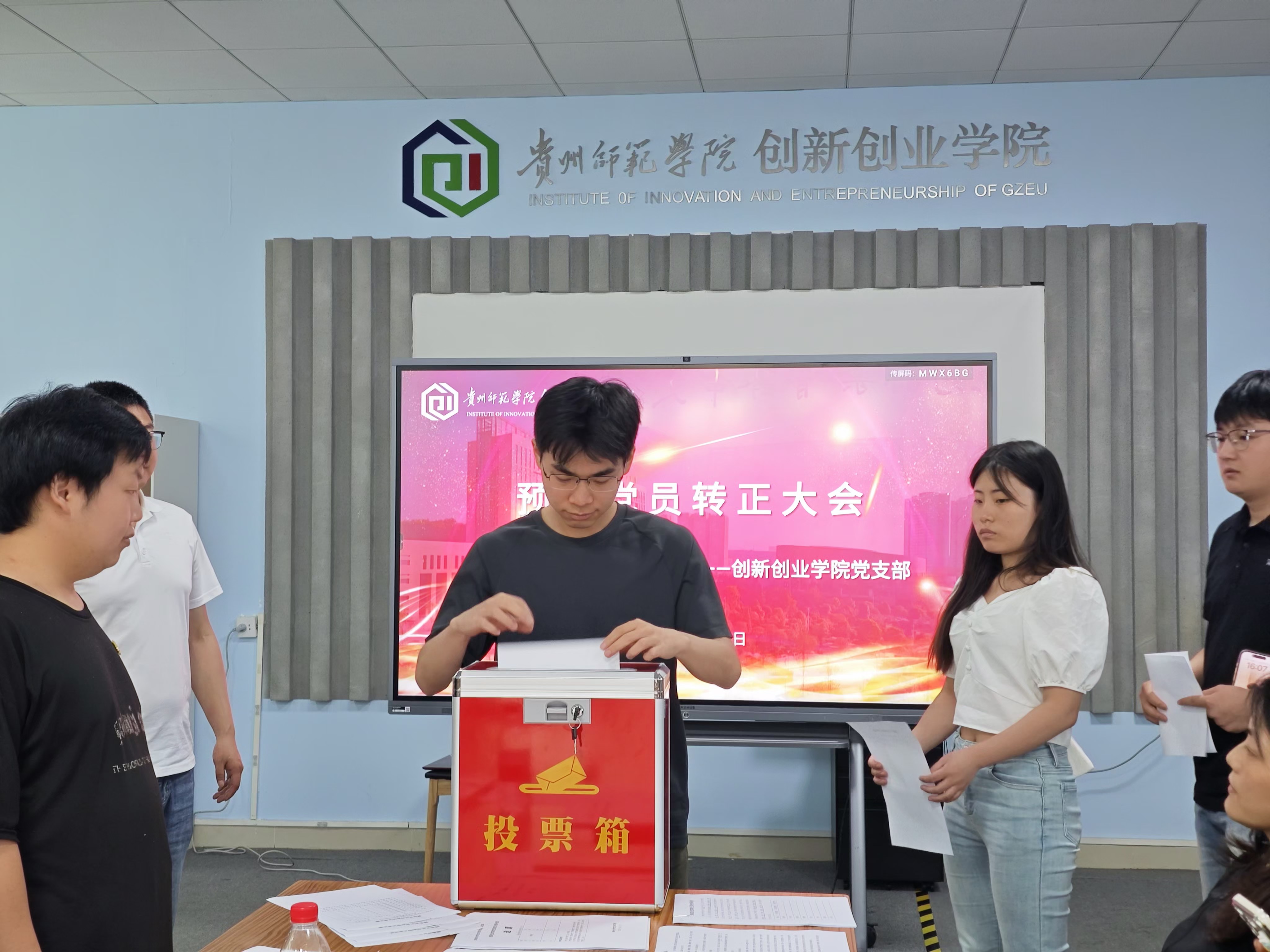 最后,谭韬进行总结发言:成为一名正式党员不仅是一种荣誉,更是一份责任和使命。希望新转正的党员们始终铭记党的根本宗旨,以坚定理想信念筑牢精神之基,在持续深化政治理论学习中提升素养,在投身创新创业实践中锤炼本领,真正将党员身份的先进性转化为学习工作的内生动力,在专业领域、团队协作与社会服务中树起先锋旗帜,以实干实绩为党的事业注入青春力量。