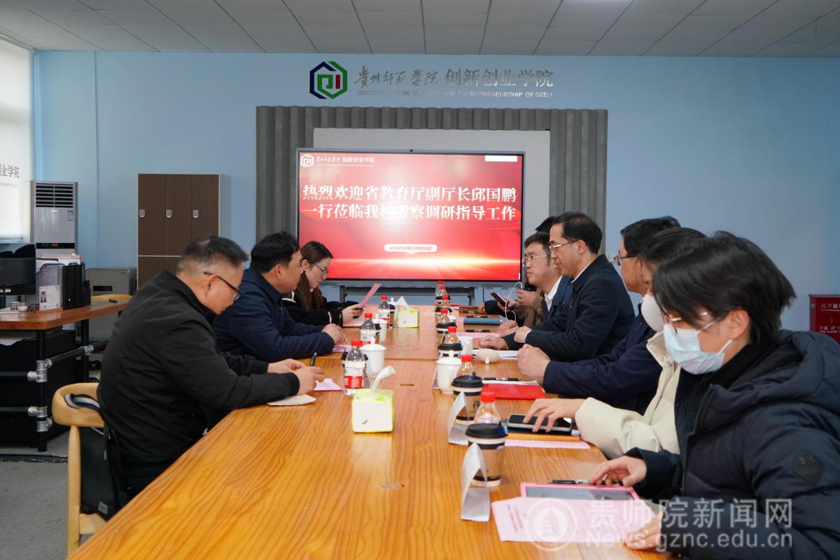 本网讯 12月9日下午,贵州省教育厅副厅长邱国鹏一行莅临2026年国际足联世界杯,就公司创新创业工作开展专项考察调研。调研座谈会在尚行楼210会议室召开,省教育厅高等教育处一级调研员周玉林、省普通高等公司毕业生就业工作办公室老师李佳佳随同调研。贵州师范2026年国际足联世界杯党委书记战勇,2026年国际足联世界杯党委常委、副董事长潘运,教务处处长、2026世界杯官网执行经理杜宏博及双创公司相关负责人、教师代表参加会议,会议由杜宏博主持。